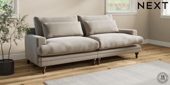 7.0.3 Buy Hutton Deep Relaxed Sit 4 Seater Sofa Ripple Chenille Light Natural Country Turned - Mid from the Next UK online shop Click here to use our accessible website