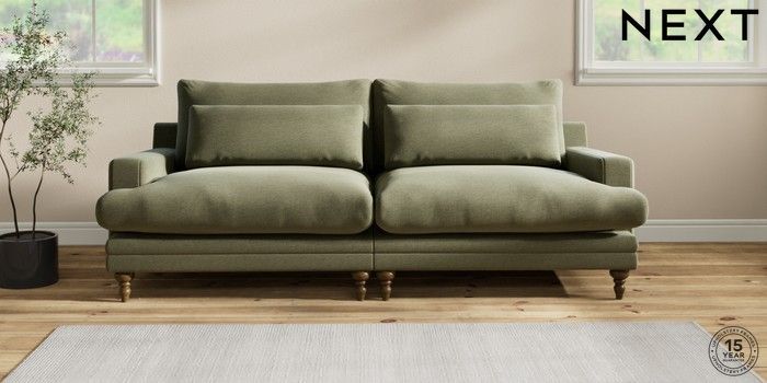 6.12.1 Buy Hutton Deep Relaxed Sit 4 Seater Sofa Ripple Chenille Mid Moss Green Country Turned - Mid from the Next UK online shop Click here to use our accessible website