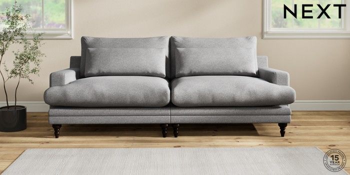 6.12.1 Buy Hutton Deep Relaxed Sit 4 Seater Sofa Studio Chenille Mid Grey Country Turned - Dark from the Next UK online shop Click here to use our accessible website