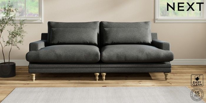 6.12.1 Buy Hutton Deep Relaxed Sit 4 Seater Sofa Tweedy Blend Easy Clean Charcoal Grey Country Turned - Light from the Next UK online shop Click here to use our accessible website