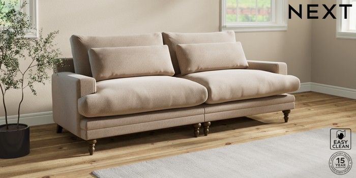 7.0.3 Buy Hutton Deep Relaxed Sit 4 Seater Sofa Tweedy Blend Easy Clean Light Dove Natural Country Turned - Mid from the Next UK online shop Click here to use our accessible website