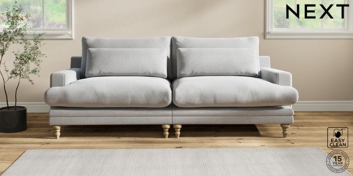 6.12.1 Buy Hutton Deep Relaxed Sit 4 Seater Sofa Tweedy Blend Easy Clean Light Silver Grey Country Turned - Light from the Next UK online shop Click here to use our accessible website