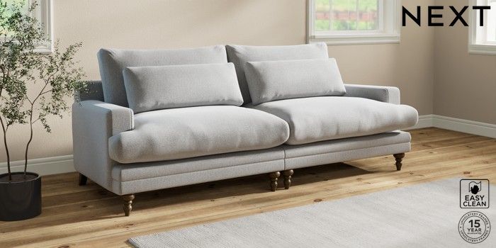 7.0.3 Buy Hutton Deep Relaxed Sit 4 Seater Sofa Tweedy Blend Easy Clean Light Silver Grey Country Turned - Mid from the Next UK online shop Click here to use our accessible website