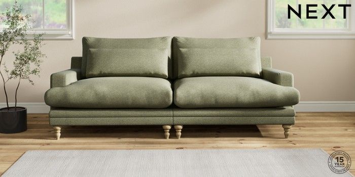 6.12.1 Buy Hutton Deep Relaxed Sit 4 Seater Sofa Tweedy Chenille Mid Moss Green Country Turned - Light from the Next UK online shop Click here to use our accessible website