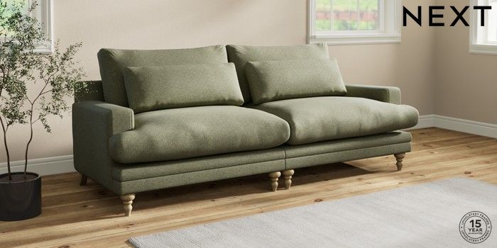 7.0.3 Buy Hutton Deep Relaxed Sit 4 Seater Sofa Tweedy Chenille Mid Moss Green Country Turned - Light from the Next UK online shop Click here to use our accessible website