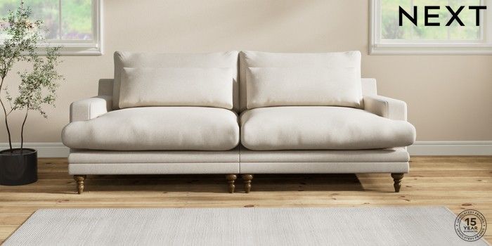6.12.1 Buy Hutton Deep Relaxed Sit 4 Seater Sofa Tweedy Chenille Oyster Country Turned - Mid from the Next UK online shop Click here to use our accessible website
