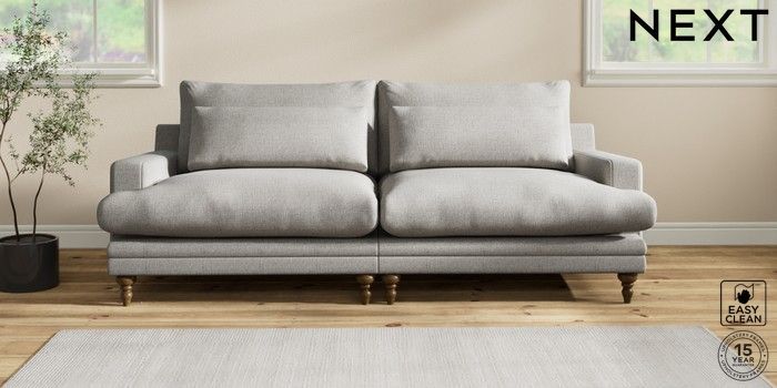 6.12.1 Buy Hutton Deep Relaxed Sit 4 Seater Sofa Woven Chenille Easy Clean Light Grey Country Turned - Mid from the Next UK online shop Click here to use our accessible website