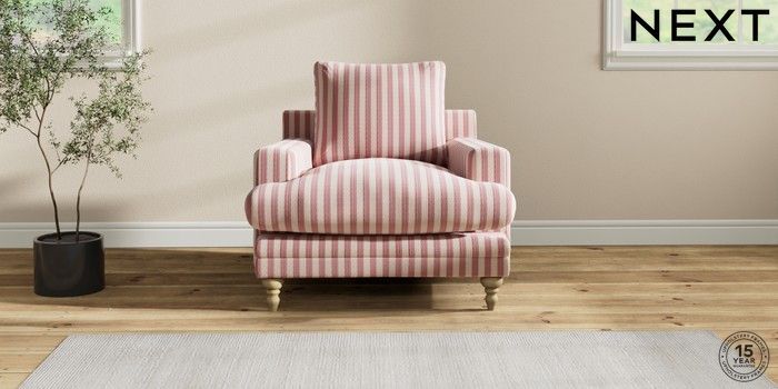 6.12.1 Buy Hutton Deep Relaxed Sit Armchair Bold Chenille Stripe Dark Pink Country Turned - Light from the Next UK online shop Click here to use our accessible website