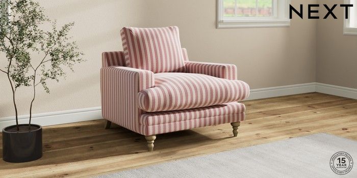 7.0.3 Buy Hutton Deep Relaxed Sit Armchair Bold Chenille Stripe Dark Pink Country Turned - Light from the Next UK online shop Click here to use our accessible website