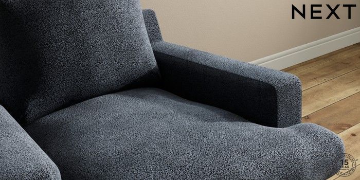 7.0.3 Buy Hutton Deep Relaxed Sit Armchair Boucle Chenille Dark Slate Blue Country Turned - Mid from the Next UK online shop Click here to use our accessible website