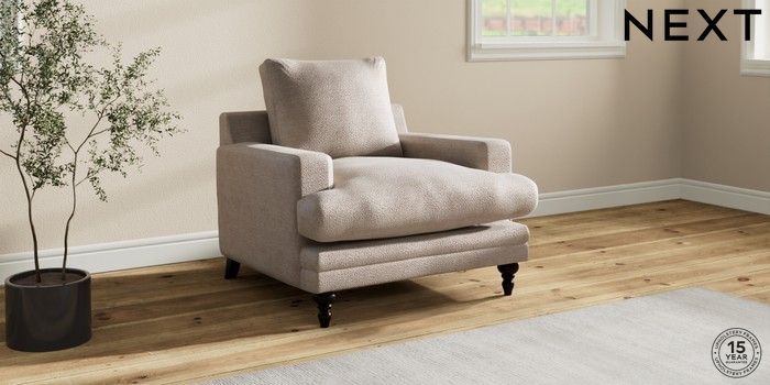 7.0.3 Buy Hutton Deep Relaxed Sit Armchair Boucle Chenille Light Natural Country Turned - Dark from the Next UK online shop Click here to use our accessible website