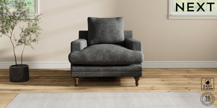 6.12.1 Buy Hutton Deep Relaxed Sit Armchair Boucle Weave Easy Clean Charcoal Grey Country Turned - Mid from the Next UK online shop Click here to use our accessible website