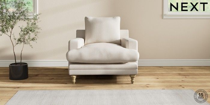 6.12.1 Buy Hutton Deep Relaxed Sit Armchair Chenille Stripe Natural Country Turned - Light from the Next UK online shop Click here to use our accessible website