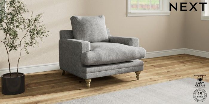 7.0.3 Buy Hutton Deep Relaxed Sit Armchair Chunky Boucle Easy Clean Light Grey Country Turned - Light from the Next UK online shop Click here to use our accessible website