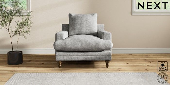 6.12.1 Buy Hutton Deep Relaxed Sit Armchair Chunky Boucle Easy Clean Light Grey Country Turned - Mid from the Next UK online shop Click here to use our accessible website