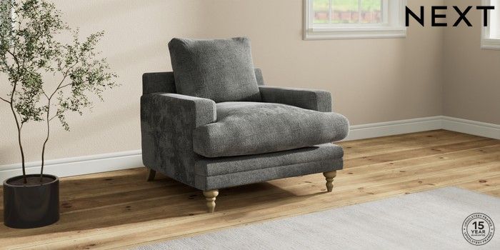 7.0.3 Buy Hutton Deep Relaxed Sit Armchair Chunky Chenille Dark Grey Country Turned - Light from the Next UK online shop Click here to use our accessible website