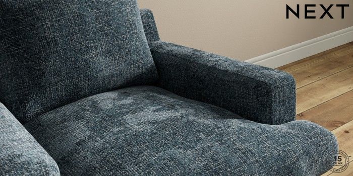 7.0.3 Buy Hutton Deep Relaxed Sit Armchair Chunky Chenille Dark Navy Blue Country Turned - Mid from the Next UK online shop Click here to use our accessible website