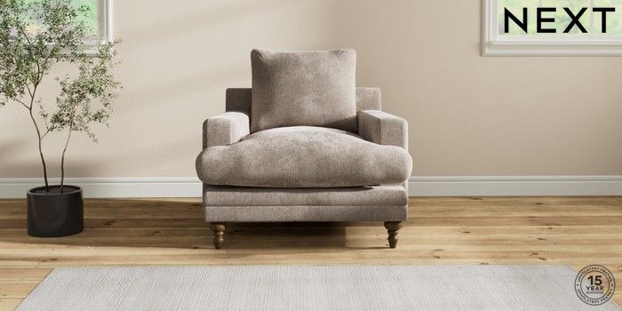 6.12.1 Buy Hutton Deep Relaxed Sit Armchair Chunky Chenille Light Dove Country Turned - Mid from the Next UK online shop Click here to use our accessible website