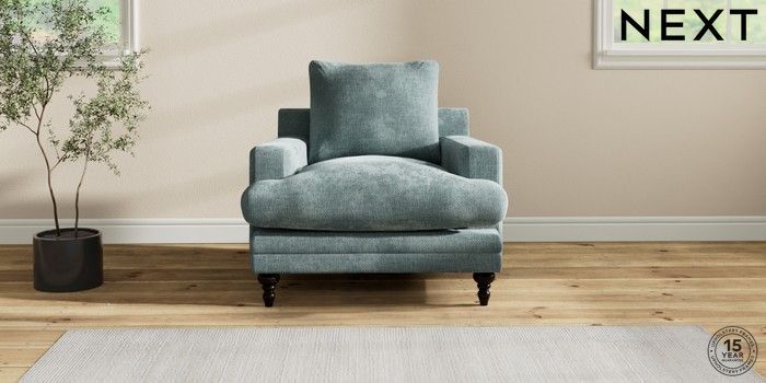 6.12.1 Buy Hutton Deep Relaxed Sit Armchair Chunky Chenille Light Teal Green Country Turned - Dark from the Next UK online shop Click here to use our accessible website
