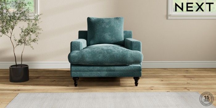 6.12.1 Buy Hutton Deep Relaxed Sit Armchair Chunky Chenille Mid Teal Green Country Turned - Dark from the Next UK online shop Click here to use our accessible website