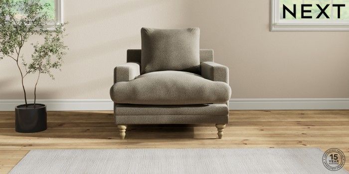 6.12.1 Buy Hutton Deep Relaxed Sit Armchair Chunky Marl Light Olive Green Country Turned - Light from the Next UK online shop Click here to use our accessible website