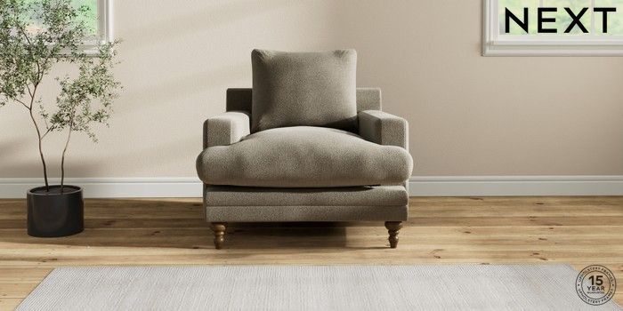 6.12.1 Buy Hutton Deep Relaxed Sit Armchair Chunky Marl Light Olive Green Country Turned - Mid from the Next UK online shop Click here to use our accessible website