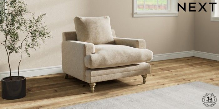 7.0.3 Buy Hutton Deep Relaxed Sit Armchair Chunky Weave Cream Country Turned - Light from the Next UK online shop Click here to use our accessible website