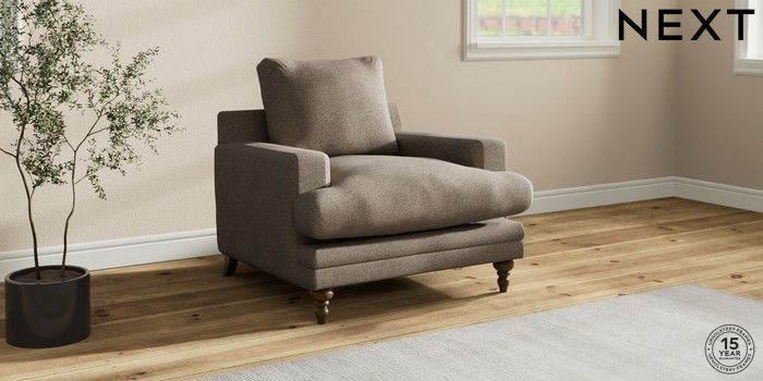 7.0.3 Buy Hutton Deep Relaxed Sit Armchair Chunky Weave Dark Natural Country Turned - Mid from the Next UK online shop Click here to use our accessible website