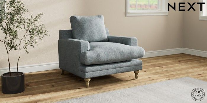 7.0.3 Buy Hutton Deep Relaxed Sit Armchair Chunky Weave Mid Blue Country Turned - Light from the Next UK online shop Click here to use our accessible website