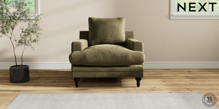 6.12.1 Buy Hutton Deep Relaxed Sit Armchair Cotswold Chenille Dark Green Country Turned - Dark from the Next UK online shop Click here to use our accessible website