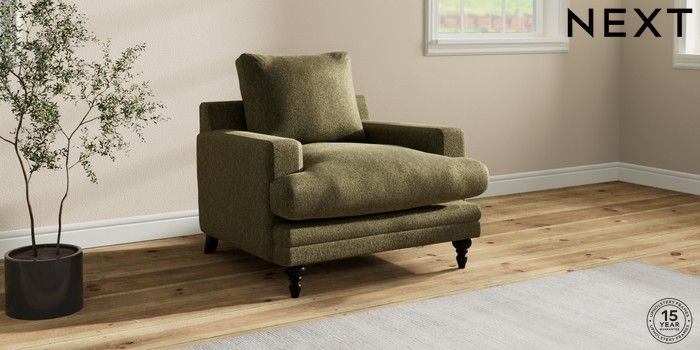 7.0.3 Buy Hutton Deep Relaxed Sit Armchair Cotswold Chenille Dark Green Country Turned - Dark from the Next UK online shop Click here to use our accessible website
