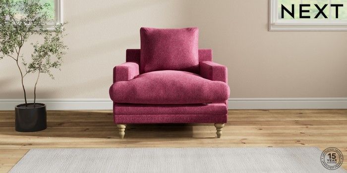 6.12.1 Buy Hutton Deep Relaxed Sit Armchair Cotswold Chenille Dark Raspberry Pink Country Turned - Light from the Next UK online shop Click here to use our accessible website