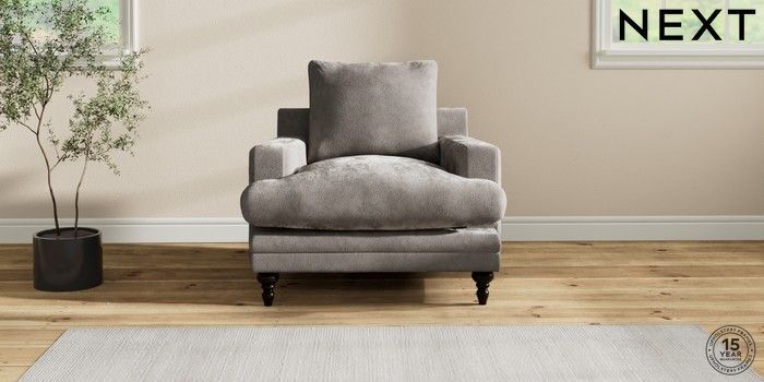 6.12.1 Buy Hutton Deep Relaxed Sit Armchair Distressed Velour French Grey Country Turned - Dark from the Next UK online shop Click here to use our accessible website