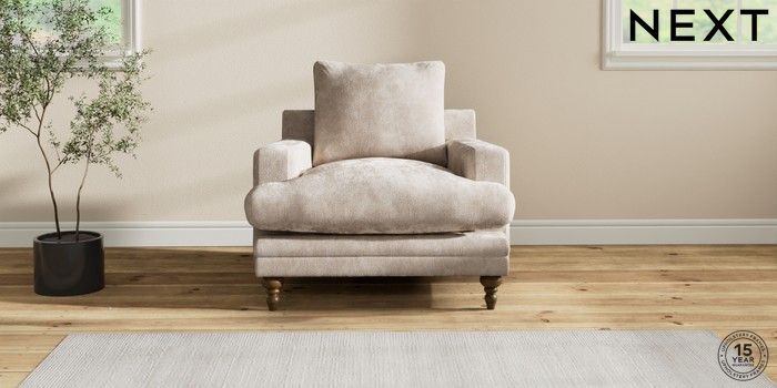 6.12.1 Buy Hutton Deep Relaxed Sit Armchair Distressed Velour Mid Natural Country Turned - Mid from the Next UK online shop Click here to use our accessible website