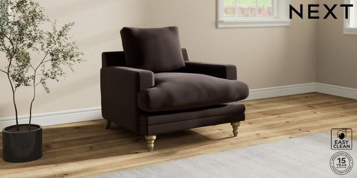 7.0.3 Buy Hutton Deep Relaxed Sit Armchair Fine Chenille Easy Clean Chocolate Brown Country Turned - Light from the Next UK online shop Click here to use our accessible website
