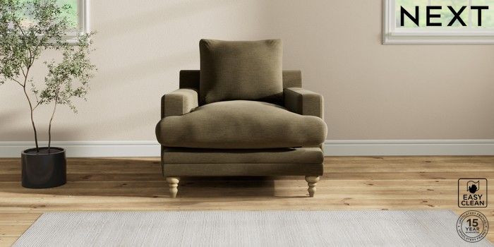 6.12.1 Buy Hutton Deep Relaxed Sit Armchair Fine Chenille Easy Clean Dark Moss Green Country Turned - Light from the Next UK online shop Click here to use our accessible website