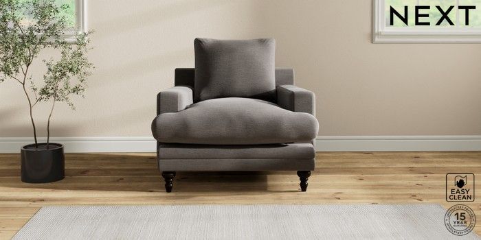 6.12.1 Buy Hutton Deep Relaxed Sit Armchair Fine Chenille Easy Clean Dark Smoke Grey Country Turned - Dark from the Next UK online shop Click here to use our accessible website