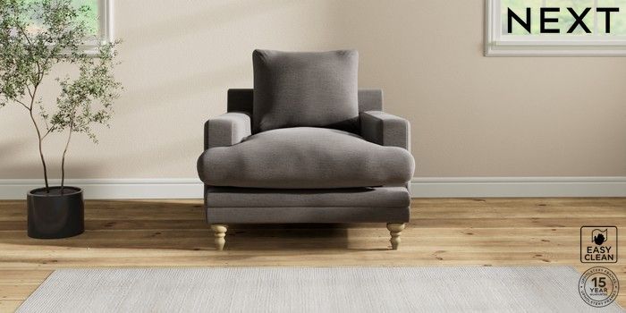 6.12.1 Buy Hutton Deep Relaxed Sit Armchair Fine Chenille Easy Clean Dark Smoke Grey Country Turned - Light from the Next UK online shop Click here to use our accessible website