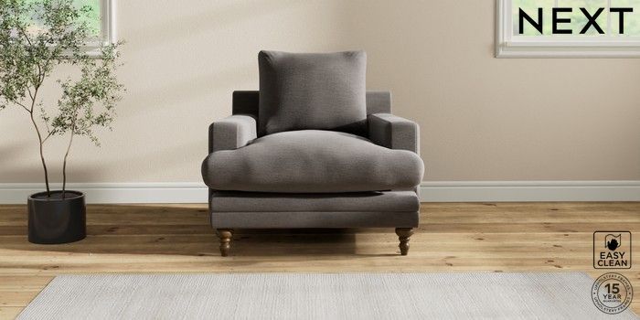 6.12.1 Buy Hutton Deep Relaxed Sit Armchair Fine Chenille Easy Clean Dark Smoke Grey Country Turned - Mid from the Next UK online shop Click here to use our accessible website