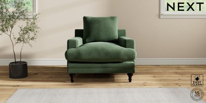 6.12.1 Buy Hutton Deep Relaxed Sit Armchair Fine Chenille Easy Clean Mid Khaki Green Country Turned - Dark from the Next UK online shop Click here to use our accessible website