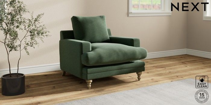 7.0.3 Buy Hutton Deep Relaxed Sit Armchair Fine Chenille Easy Clean Mid Khaki Green Country Turned - Light from the Next UK online shop Click here to use our accessible website