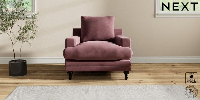 6.12.1 Buy Hutton Deep Relaxed Sit Armchair Fine Chenille Easy Clean Mid Mulberry Purple Country Turned - Dark from the Next UK online shop Click here to use our accessible website