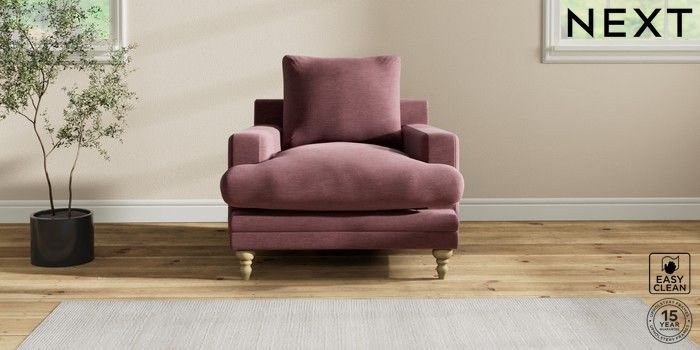 6.12.1 Buy Hutton Deep Relaxed Sit Armchair Fine Chenille Easy Clean Mid Mulberry Purple Country Turned - Light from the Next UK online shop Click here to use our accessible website