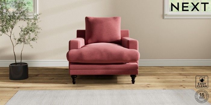 6.12.1 Buy Hutton Deep Relaxed Sit Armchair Fine Chenille Easy Clean Mid Pink Country Turned - Dark from the Next UK online shop Click here to use our accessible website