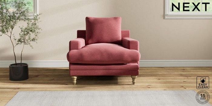 6.12.1 Buy Hutton Deep Relaxed Sit Armchair Fine Chenille Easy Clean Mid Pink Country Turned - Light from the Next UK online shop Click here to use our accessible website