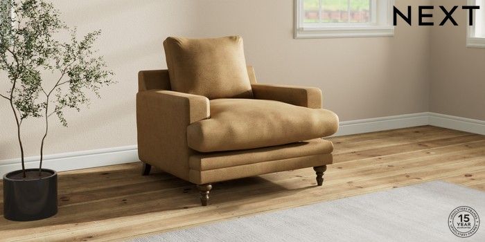 7.0.3 Buy Hutton Deep Relaxed Sit Armchair Luxe Chenille Honey Yellow Country Turned - Mid from the Next UK online shop Click here to use our accessible website