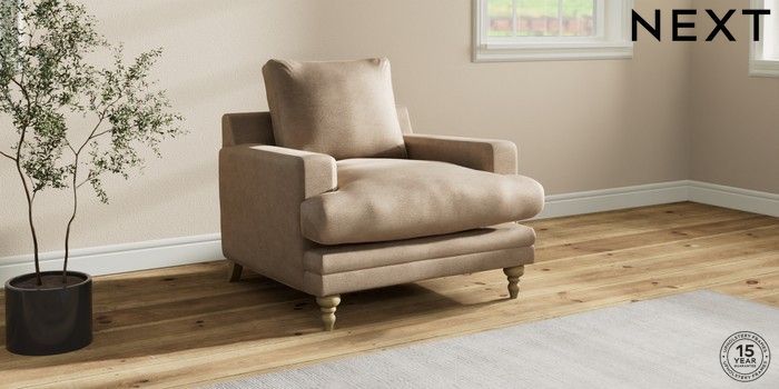 7.0.3 Buy Hutton Deep Relaxed Sit Armchair Luxe Chenille Mid Camel Beige Country Turned - Light from the Next UK online shop Click here to use our accessible website