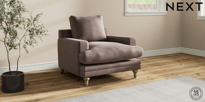 7.0.3 Buy Hutton Deep Relaxed Sit Armchair Luxe Chenille Mink Brown Country Turned - Light from the Next UK online shop Click here to use our accessible website