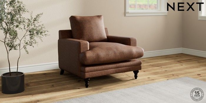 7.0.3 Buy Hutton Deep Relaxed Sit Armchair Monza Faux Leather Easy Clean Chestnut Brown Country Turned - Dark from the Next UK online shop Click here to use our accessible website