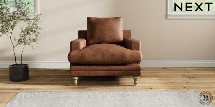6.12.1 Buy Hutton Deep Relaxed Sit Armchair Monza Faux Leather Easy Clean Chestnut Brown Country Turned - Light from the Next UK online shop Click here to use our accessible website